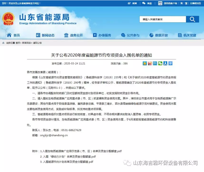 熱烈祝賀海(hǎi)吉(jí)雅環保設備有限公司入圍2020年度山東省能源節約項目